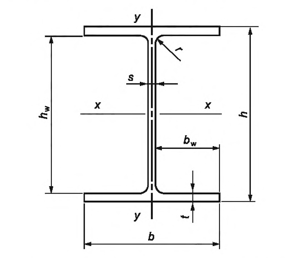 - Высота двутавра (h): Главный размер, определяющий номер балки.